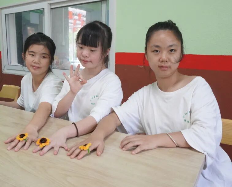 ▲孩子们在老师的带领下制作向日葵戒指。 他们专注的眼神、认真的表情 让人感受到他们对知识的渴望和对生活的热爱。