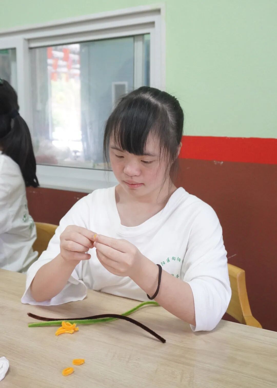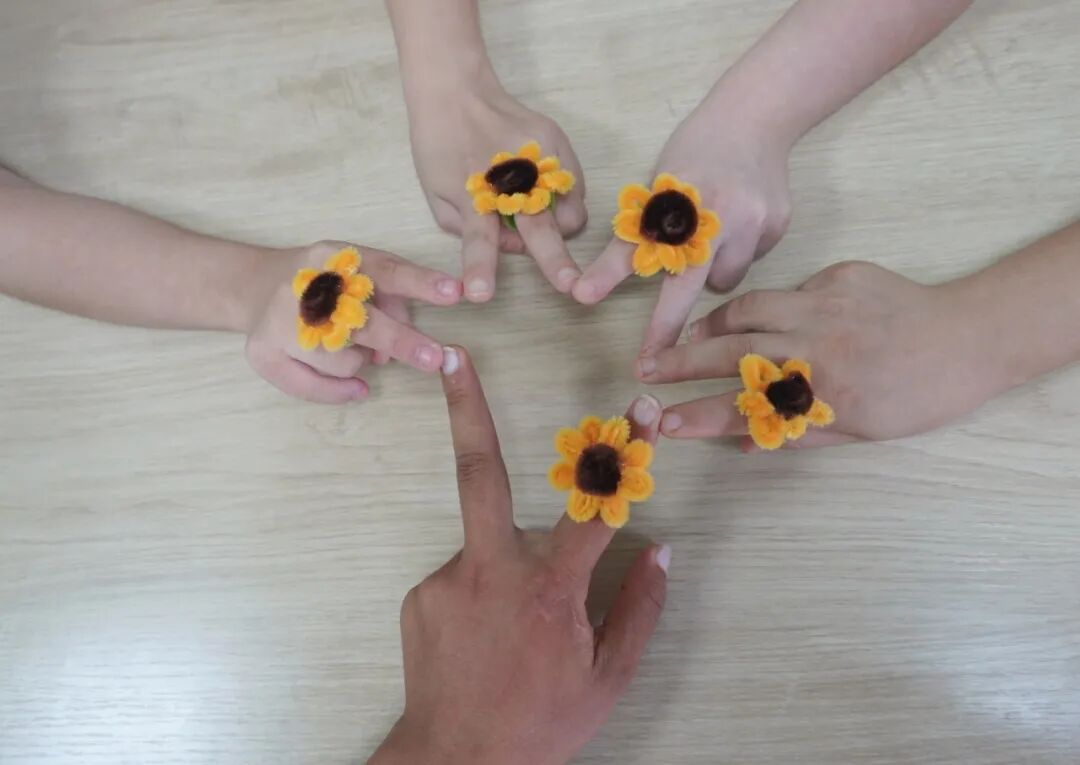 那一根根色彩斑斓的扭扭棒,在孩子们的手中仿佛被赋予了生命,变成了一朵朵灿烂的向日葵。